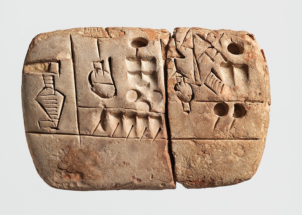 Pour manipuler ces calculi plus facilement, la boule d’argile fut aplanie et transformée en tablette, sur laquelle étaient gravés des pictogrammes représentant la nature des marchandises : épis de blé, animaux, etc. Durant la seconde moitié du IVᵉ millénaire av. J.-C., l’écriture naît à Sumer.