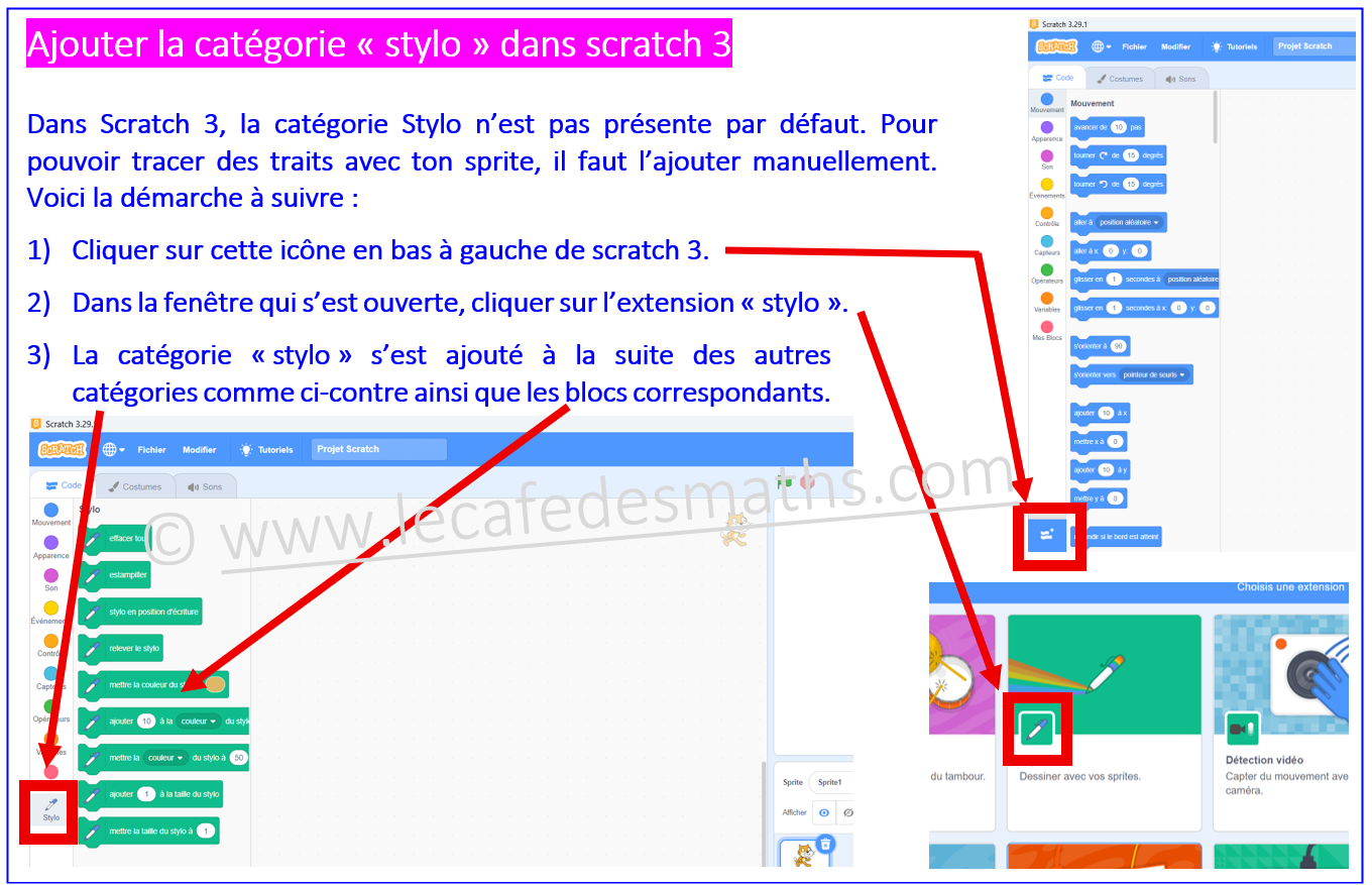 Lien pour ouvrir scratch 3 en ligne : https://scratch.mit.edu/projects/editor/