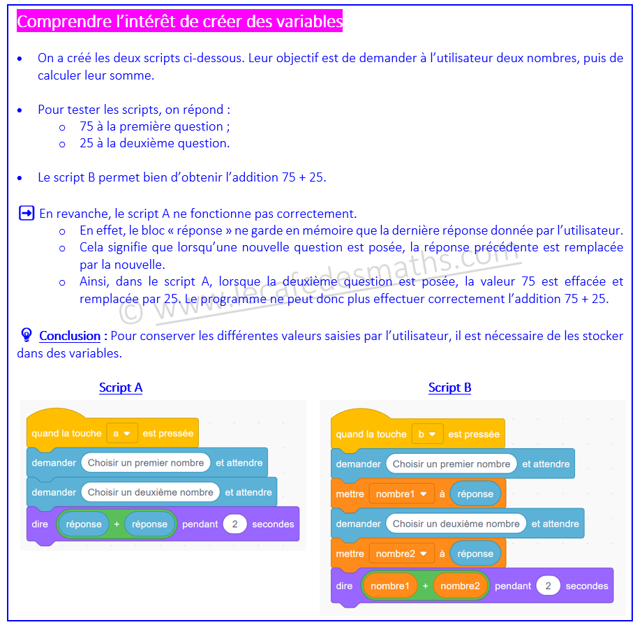 • a) Quelle est la valeur donnée par le sprite lorsque l’on répond 25 à la question posée dans le script ?
